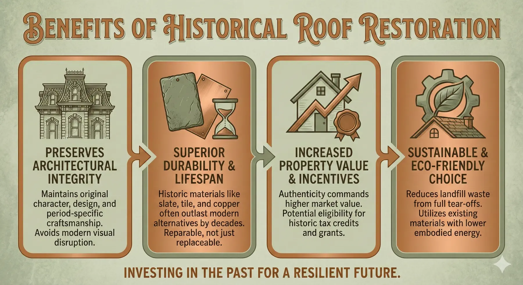 - Skilled Restoration or Replacement: Work is completed using period-appropriate techniques tailored to each historic roofing system.